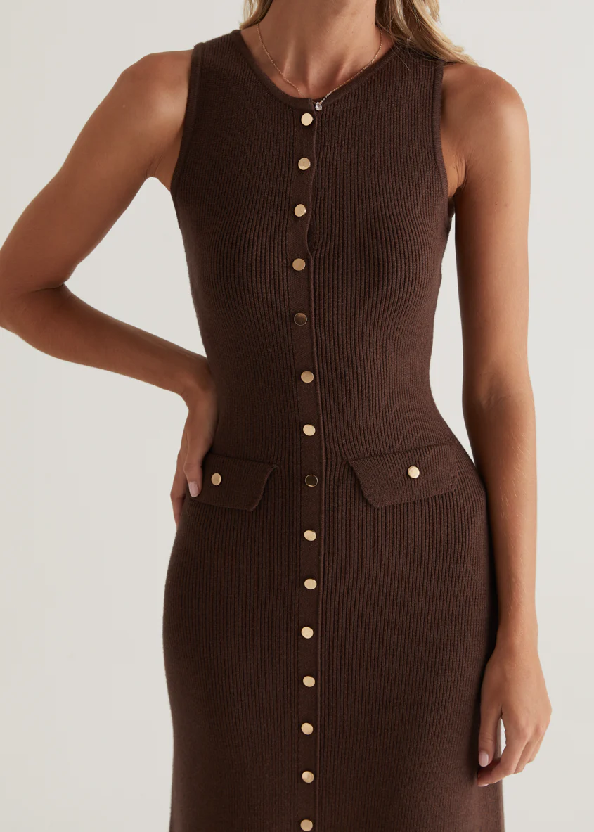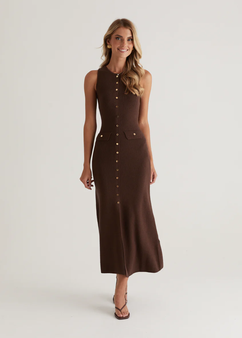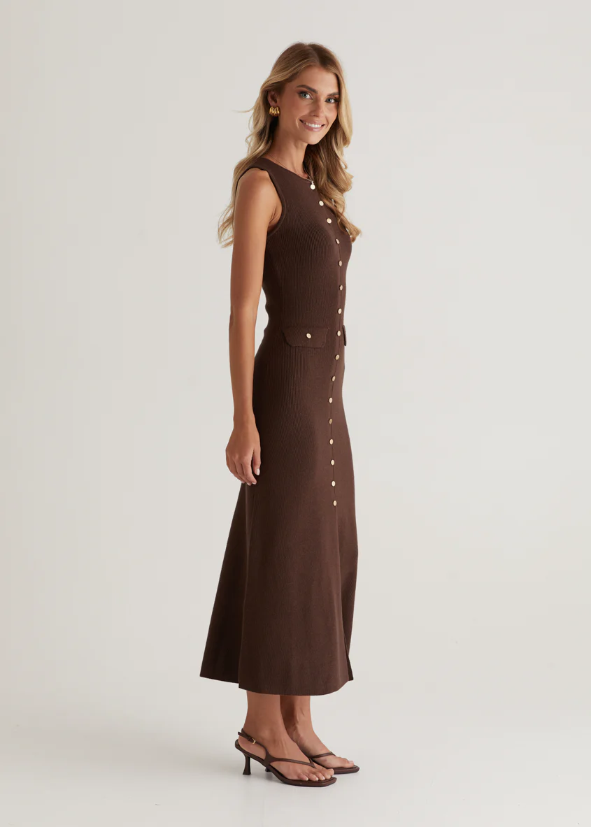 Tropicali Drop Shoulder Maxi Dress - Chocolate