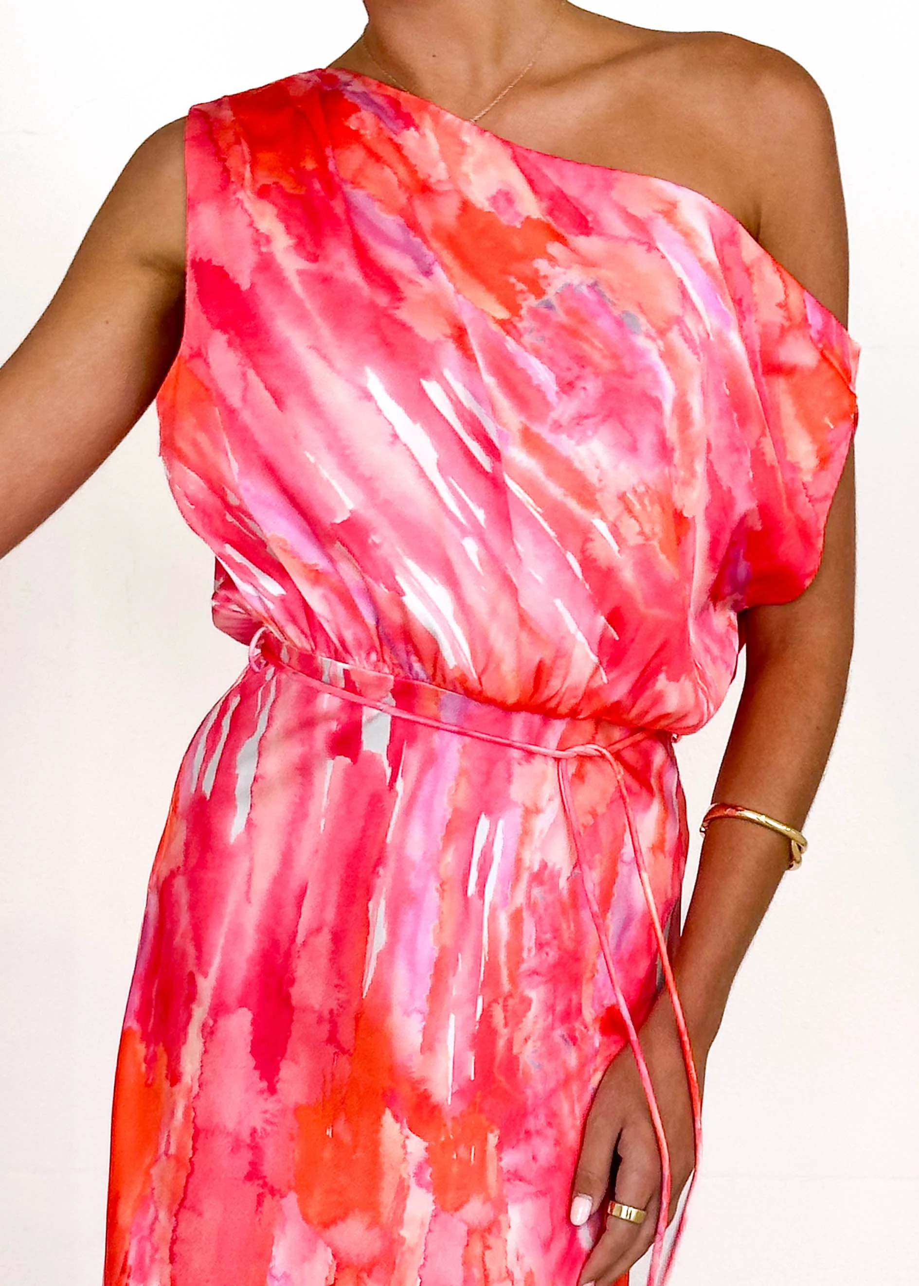 Vivian One Shoulder Maxi Dress - Pink Splash