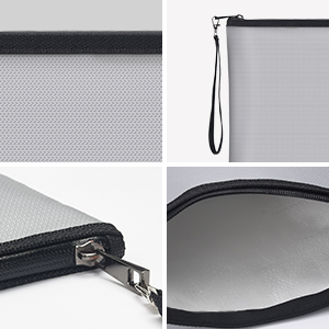 - Tessuto in fibra di vetro rivestito in silicone delicato sulla pelle: la nostra borsa ignifuga evita il prurito e le irritazioni che possono causare altre cassette ignifughe. È dotata sia all'interno che all'esterno di una struttura in fibra di vetro ignifuga a trama stretta, bordi a doppia cucitura e un tessuto rinforzato con trattamento che offre una protezione completa.