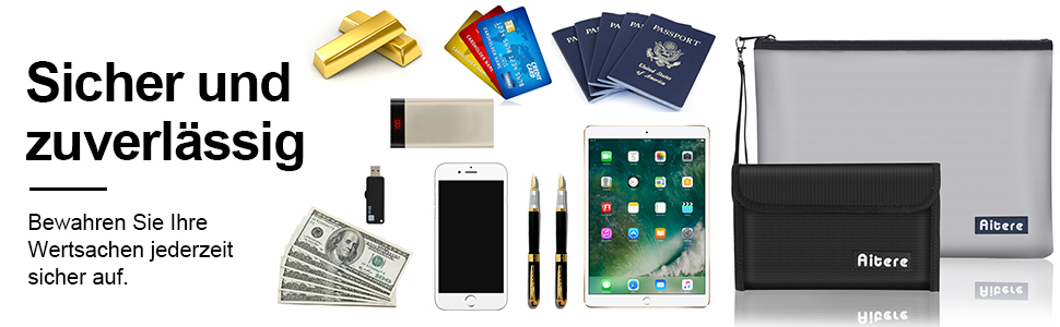 - Compatto e durevole: tieni i tuoi oggetti di valore al sicuro nella nostra cassetta portavalori ignifuga e impermeabile. La borsa a prova di Aitere è dotata di un rivestimento in fibra di vetro ecologico di alta qualità e offre una protezione affidabile in situazioni estreme come incendi, inondazioni e tempeste.