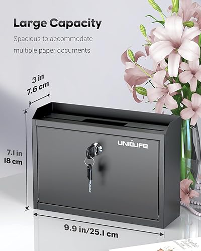 Uniclife Cassetta postale da parete con serratura a chiave e porta giornali, scatola per suggerimenti con slot superiori, cassetta di sicurezza, scatola per donazioni in metallo, urne per attività