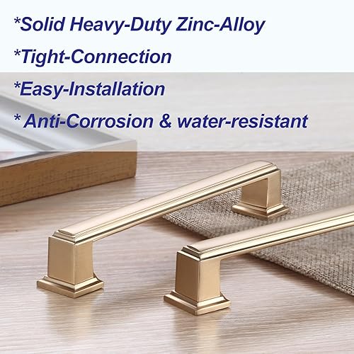 10 Pack Maniglie da Cucina Oro Heavy-Duty,Maniglie Per Mobili da Cucina,Distanza Tra I Fori di 96mm, Maniglie per Armadietti Oro, Maniglie per Armadi Oro e Maniglie per Mobili Oro