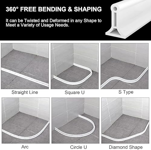Barriera Doccia Ferma Acqua Shower Barrier Barriera Doccia Pieghevole Barriera Antiacqua Doccia Autoadesivo Bordo per Piatto Doccia Lavelli di Bagno e Cucina (2M, White)