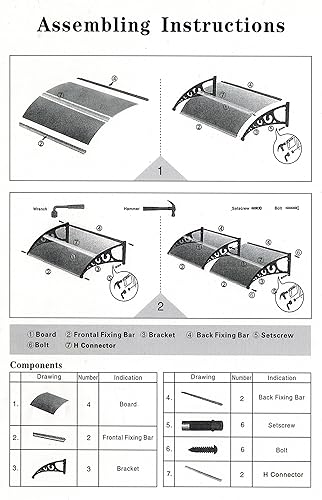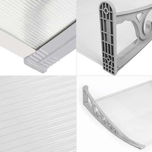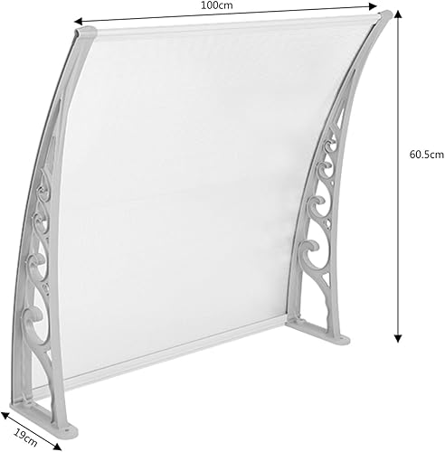Pensilina Tettoia per Porta d'Ingresso,Pensilina Modulabile Tettoia per Porta o Finestra con Protezione UV Copertura in Policarbonato Parapioggia,60 * 100 cm (bianco)
