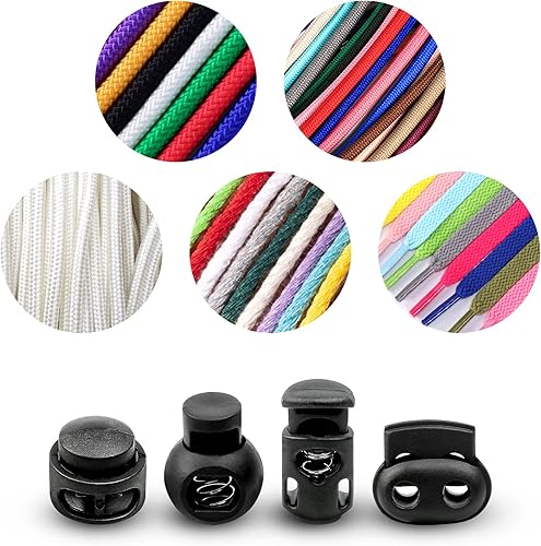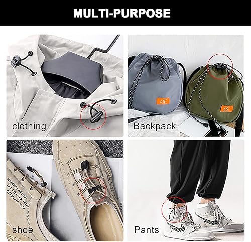 100 morsetti a molla a doppio foro singolo, 4 stili, fermacorda, rotondi, in plastica, per campeggio, escursioni, sport, zaini, nero, bianco, L