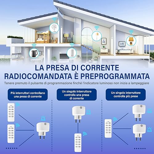Presa con Telecomando, 3680W 4 Prese e 1er Telecomandi, Presa Telecomandata, Presa Smart con Gamma 30m, Telecomandi per Decorazioni Natalizie, Programmabile ed Espandibile, Bianco