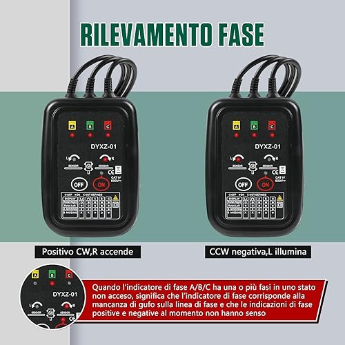 Senso Ciclico Fasi Tester Cercafase Senza Contatto Rotazione Fasi di Fase AC 70V~600V, Rilevamento Sequenza Fasi, Rilevamento Mancanza Fase, Rilevamento Rotazione Motore