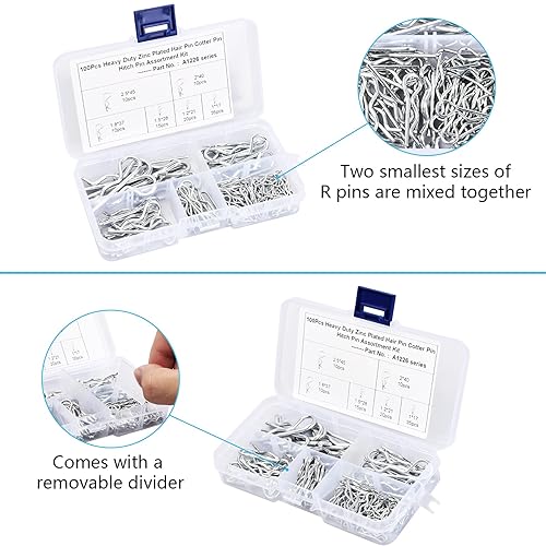 100 Pezzi Coppiglie, Coppiglie Acciaio Inox, Coppiglie a Scatto, Coppiglie Mollette A R, Coppiglia a Molla in Acciaio Inox, Adatto Ad Auto, Camion, Trattori, Tosaerba, 6 Dimensioni