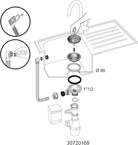 Wirquin 30723117 Piletta per lavello ø90 1 vasca, plastica e metallo, con troppopieno esterno, cromato