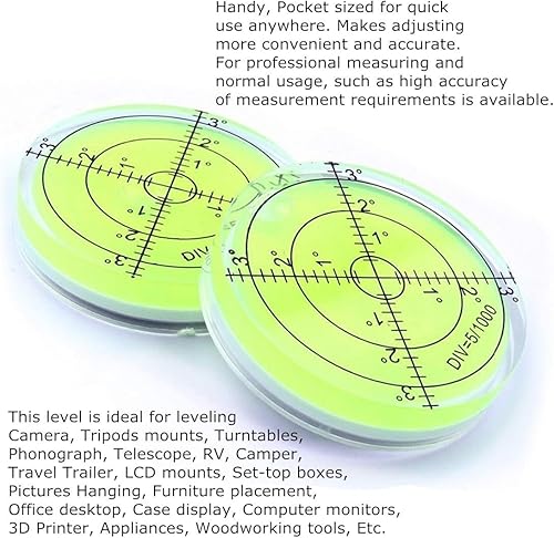 Livella di Precisione Rotonda, Mini Livella a Bolla, Strumento di Misurazione Diametro 60 Mm Livella a Bolla Rotonda Con Scala Per Il Bilanciamento Della Piattaforma Della Fotocamera