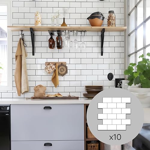 Set di 10 autoadesivi decorativi 3D per rivestimento di cucina e bagno, in PVC impermeabile, facili da installare e pulire, bianco