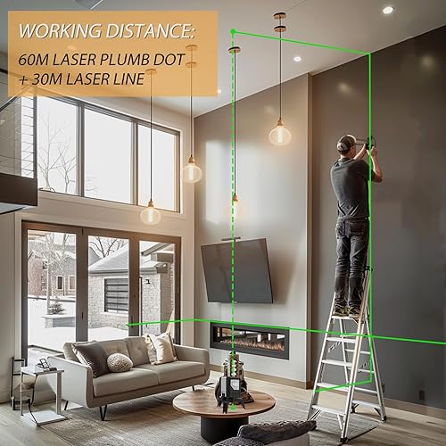 Livella laser, laser a piombo a 2 punti verdi, linea orizzontale 110° x linea verticale 180°, laser a linea trasversale da 82 piedi per layout e impianti idraulici - 9211G