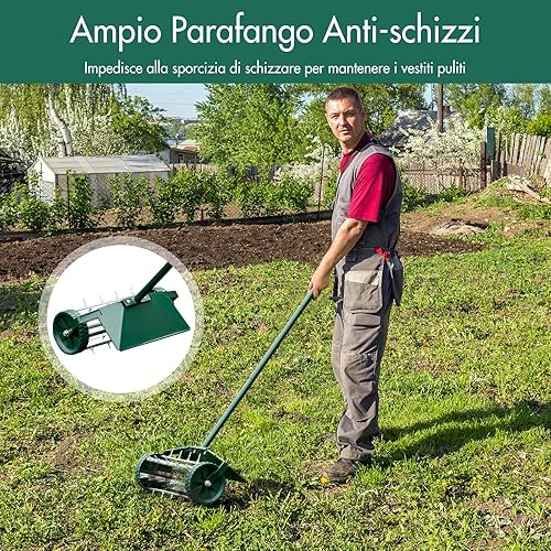 Arieggiatore Manuale per Prato, Aeratore da Giardino con Rullo Spinato e Parafango, Unghie da 3 cm, Ideale per Cortili, Giardini e Prato