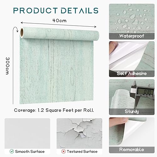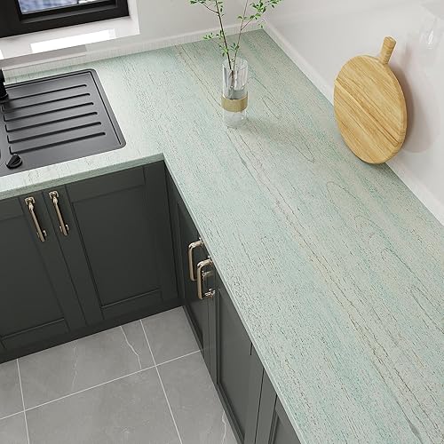 Pellicola Adesiva Legno Verde Vintage Carta da Parati Effetto Legno Verde Grigio Carta Adesiva per Mobili Camera da Letto Pellicola Autoadesiva per Cucina Bagno Impermeabile 40cm x 300cm