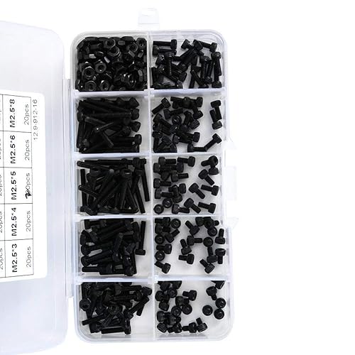 Set di viti a esagono incassato, 300 pezzi M2,5 x 3-20 mm 12,9 grado in acciaio legato nero con esagono incassato Vite a testa cilindrica con dado