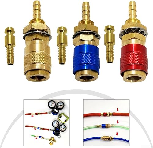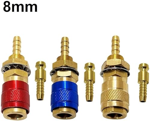 Connettori rapidi in ottone resistente per tubi da 8 mm, perfettamente adatti per connessioni di apparecchiature di saldatura TIG (3 pezzi)