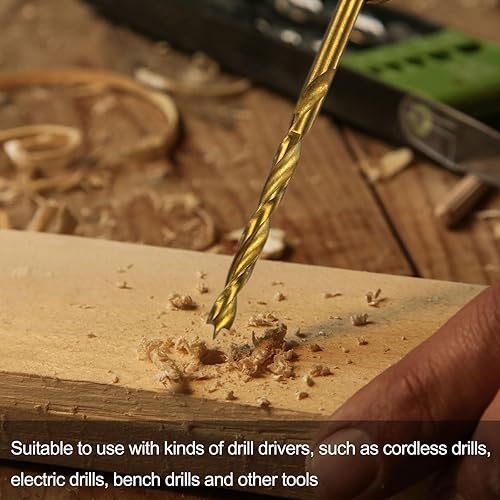 Punta Trapano Brad Point 5.5mm(7/32') Dia Dritto Codolo Tondo Punta Trapano Metrica Brad Point Spirale Punta Elicoidale per Falegname Lavorazione Legno Gomma, Dorato