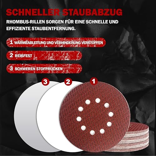 Dischi Abrasivi 225 mm, 30 Pezzi 10 Fori Rombo Rosso Carta Vetrata Ossido di Alluminio, P40 Grana per Levigatrice Cartongesso
