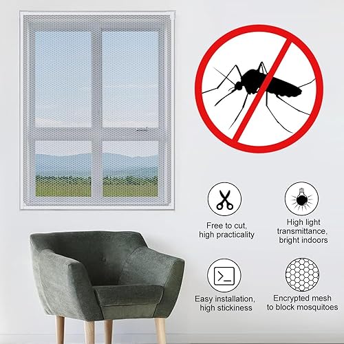 3 Rotoli Zanzariera per Finestre 1,3*1,5m con 3 Nastri Autoadesivi e 10 Riparazione per Zanzariere Zanzariera per Finestre a Rete per Bloccare Insetti Zanzare Mosche ed Altri Insetti, Bianco