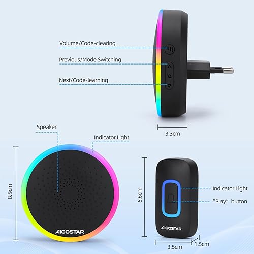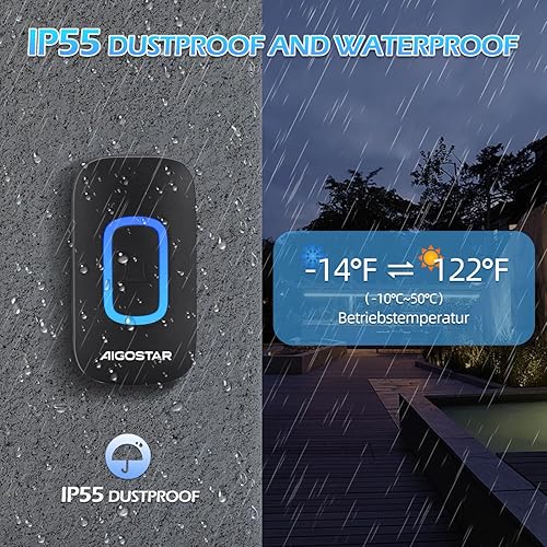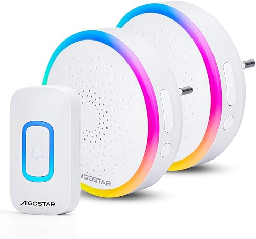 Aigostar campanello senza fili, Campanello Wireless Impermeabile IP55 da Esterno, Campanello Wireless RGB, Portata 150M, 5 Livelli Volume 60 Melodie, Bianco, 1 Trasmettitore+2 Ricevitor