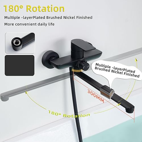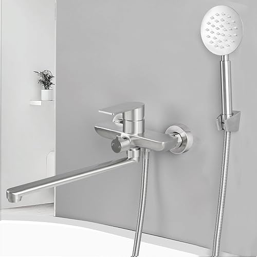 Rubinetto Vasca da Bagno, Miscelatore Vasca da Bagno con Doccetta, Rubinetto Doccia Bocca Lunga 30CM, Spazzolata, 8Y2OK