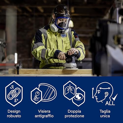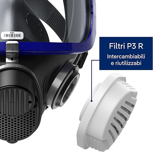 X-plore 5500 Maschera di protezione respiratoria completa con filtri P3 R sostituibili per polveri, particelle fini, polvere metallica