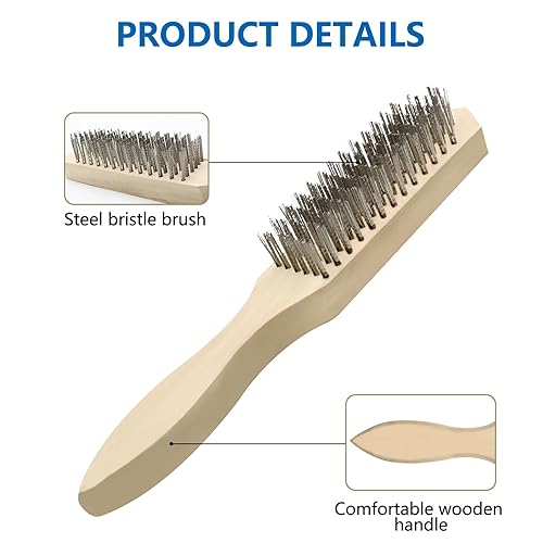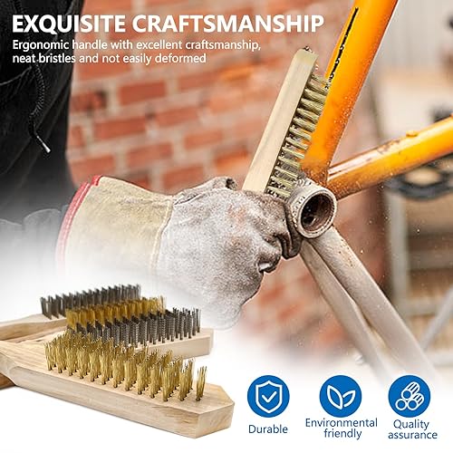 Spazzola metallica in ottone con manico in legno, set di 4 spazzole in acciaio inox, spazzola in ottone, spazzola in ottone, 13/15 file, per pulire la ruggine, lo sporco, la spazzola