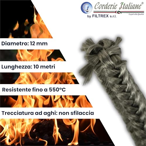 Corderie Italiane 006026358 Treccia in Fibra Vetro Grigia, 12 mm-10 mt