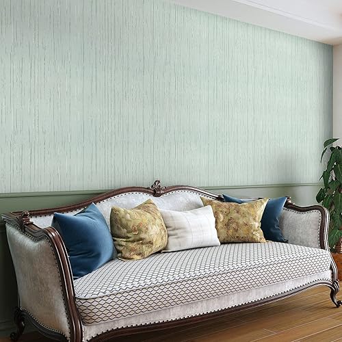 VaryPaper Carta da Parati in Tessuto Verde 40cmx200cm con Struttura Lino Grasscloth - Adesivi Decorativi per Mobili, Camera da Letto e Soggiorno Moderno