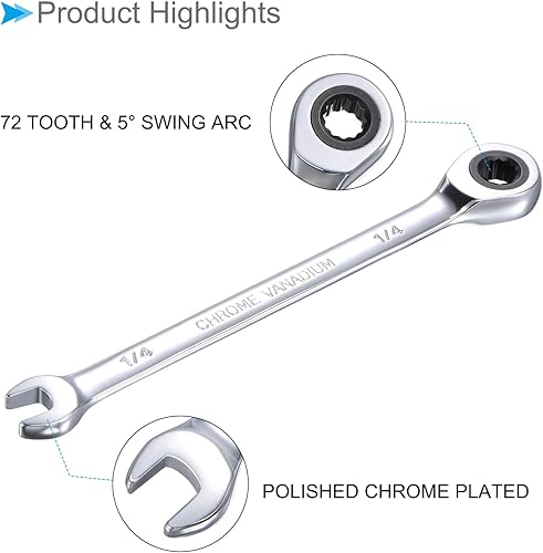 Chiave a Cricchetto, Testa da 1/4' Sae a 72 Denti, Combinazione di Chiavi a Cricchetto in Acciaio al Cromo-Vanadio - (Applicazioni: per Riparazioni Domestiche)