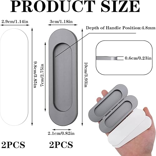 2 maniglie autoadesive ovali scorrevoli in lega di alluminio, design moderno, senza foratura, per porte di fienili, finestre, armadi (grigio, 100 mm)
