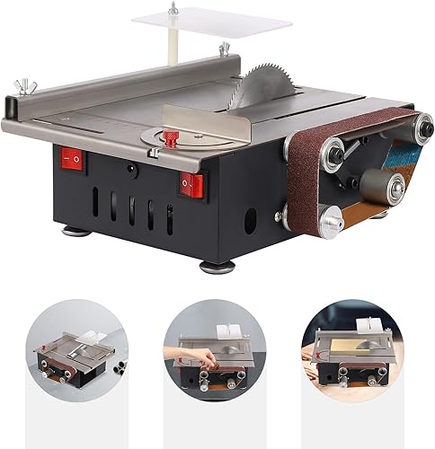 Mini sega circolare da tavolo fai da te con nastro abrasivo e motore da 200 W per taglio legno, taglio metallo e applicazioni fai da te, 33 mm