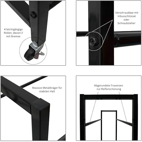 Scaffale per pneumatici CARRERO (altezza x larghezza x profondità) 104 x 55 x 40 cm, fino a 4 pneumatici su 2 livelli, colore nero, scaffale per officina, cantina
