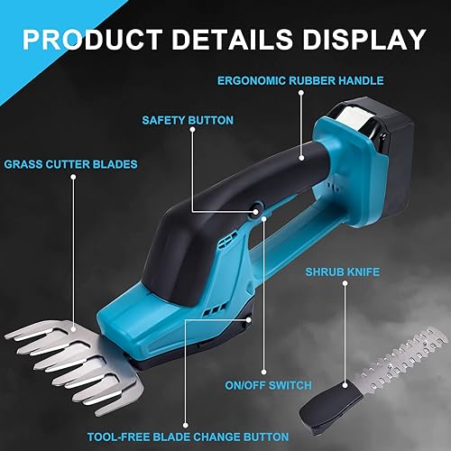 Tagliasiepi e cesoie per erba a batteria 2 in 1, Forbici elettriche per arbusti compatibile con Makita 18V batteria, Tagliabordi manuale con 2 lame per tagliare arbusti ed erba