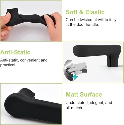 Copri Maniglia Della Porta, 2 Pezzi Nero Opaco in Silicone per Maniglie Della Porta, Proteggi Maniglia Porta Antistatici di Sicurezza per Porta Leve Piatte e Quadrate