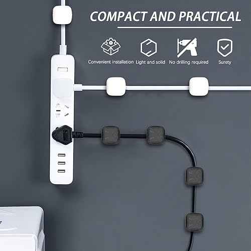 24 Pezzi Fermacavi Magnetico Autoadesivo Clip Cavi Scrivania Magnetici Organizer Clip Cavi Magnetic Cable Management Supporti Magnetici per Cavi di Ricarica Scrivania Comodino (Bianco, Nero)