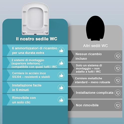 WC Ovale, Coperchio Water Bianco, Copriwater a Chiusura Rallentata, Copri WC Universale, Asse WC Facile da Montare, Coprivaso Famiglia