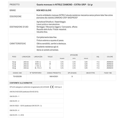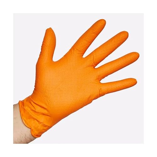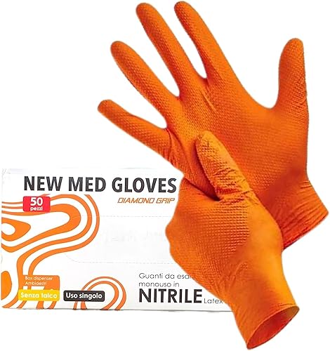 Guanti in Nitrile - Taglia L, Confezione da 50 pz | Arancioni Diamantati Senza Polvere, Ipoallergenici, Certificati CE | Per Meccanici, Alimenti, Tatuator