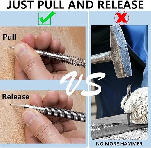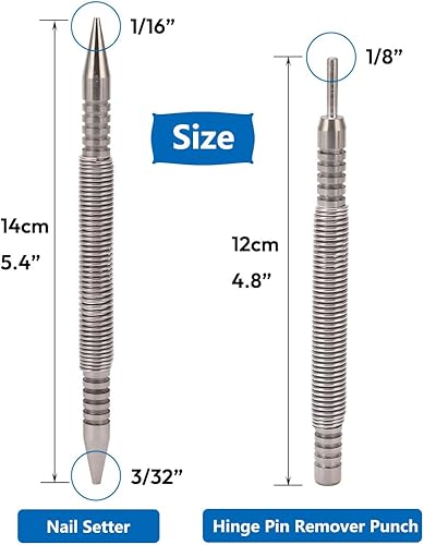 Saipor Set di 2 punzoni per rimozione di perni a doppia testa e set di punzoni per rimozione di cerniere, 3/32 'e 1/16' teste Set di chiodi a molla senza martello, 3500 PSI Striking Force Spring