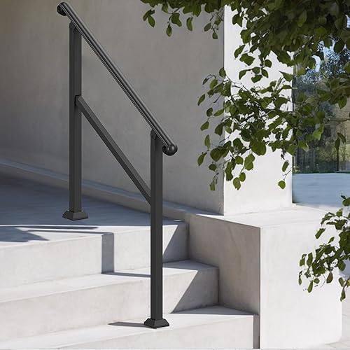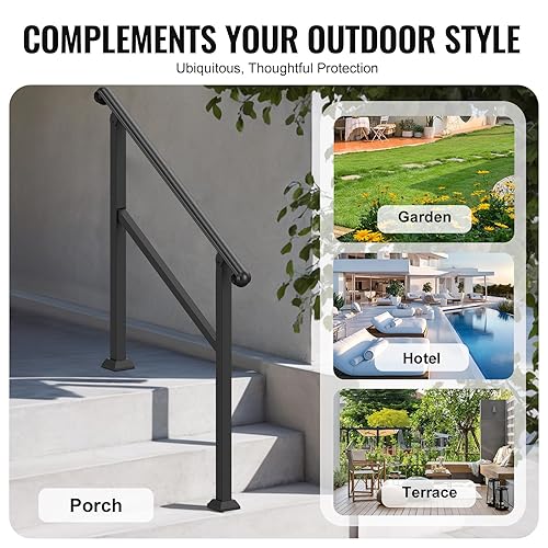 VEVOR Corrimano per Gradini Esterni, Lunghezza 101,6 cm Corrimano per Scale a 2-3 Gradini, Ringhiere per Gradini Esterni con Kit di Installazione, Ringhiera per Portico, Corrimano per Terrazza, Nero