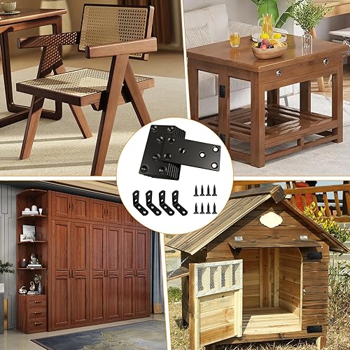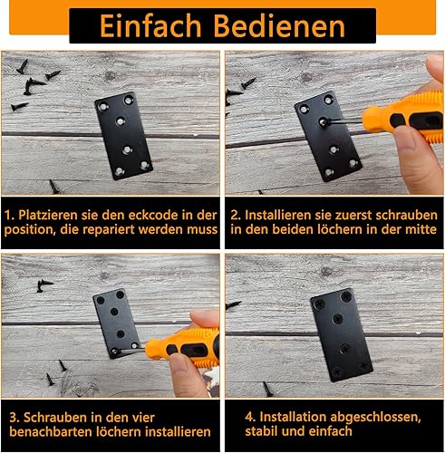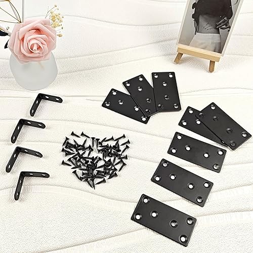 8 Pezzi Piastre Metalliche Per Collegamento Travi, 4Pezzi Squadrette Piane Angolari, Connettori Piatti In Acciaio Inox con 60 Viti, Piastre Forate Per Giunzioni In Legno In Acciaio Inox per Mobili DIY