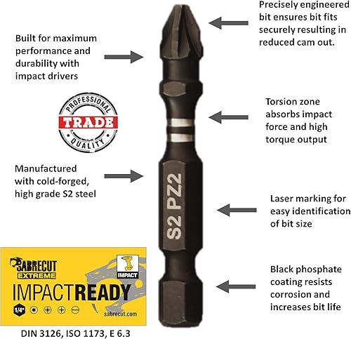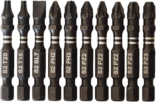 10 x SabreCut SCPC50_10 50 mm PZ2 PZ3 PH2 PH3 SL7 T15 T20 Set di punte per cacciavite a percussione a punta singola Pozidriv POZI Phillips n. 2 n. 3 Torx 15 20 per impieghi gravosi con custodia