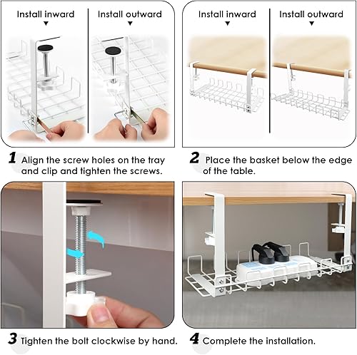 Cable Management, Porta Cavi Scrivania Nascondi Cavi, Vassoio per la Gestione dei Cavi Senza Bisogno di Forare, Scatola Porta Cavi per Ufficio e Casa Scrivania, Bianco