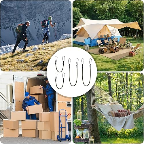 4 Pezzi Corda Elastica con Moschettone Durevole, 30/60cm Cinghie Elastiche a Moschettone Robuste, Resistente Corde Elastiche con Gancio per Bagagli Bicicletta Campeggio Auto
