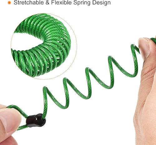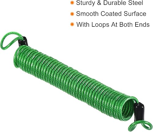 Sicurezza Acciaio Cavo 2.5mm x 2.5m/8.2ft Rivestito Molla Bagaglio Blocco Filo Corda con Doppio Cerchio Verde