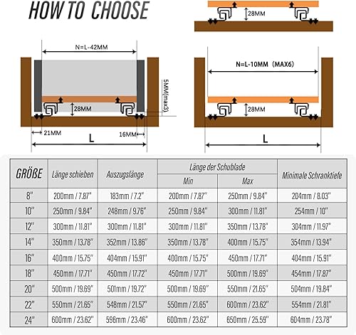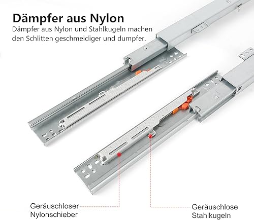 Guide per cassetti, completamente estratte, guide telescopiche, montaggio a pavimento, in acciaio laminato a freddo, 20/25/30/35/40/45/50/55 cm, a scelta, per portabottiglie in vetro ed