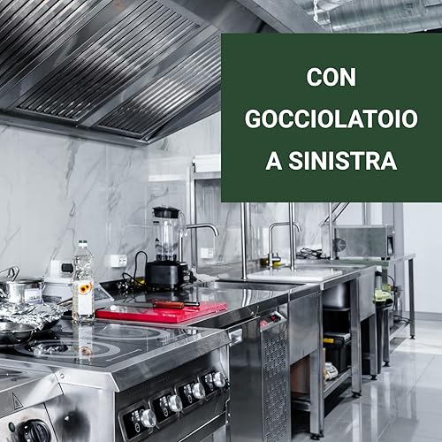 Lavello in Acciaio Inox - Professionale, per Cucine Ristoranti e Pizzerie - 2 Vasche, Gocciolatorio a Sbalzo a Sx - 160x70x85h