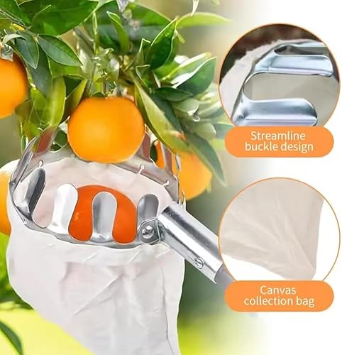 Raccoglifrutta,Strumento Raccoglitore di Frutta,Raccoglitrice di Frutta con Borsa in Tessuto,Raccoglitrice di Frutta,Raccogli frutta in metallo,Per la raccolta di mele,Arance,Pesche,Pere,Ciliegie