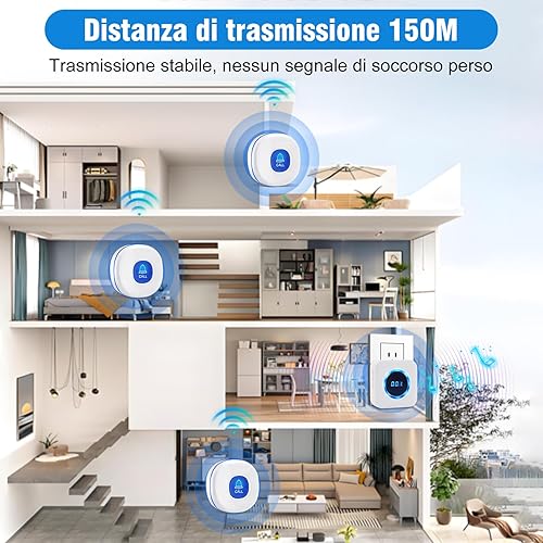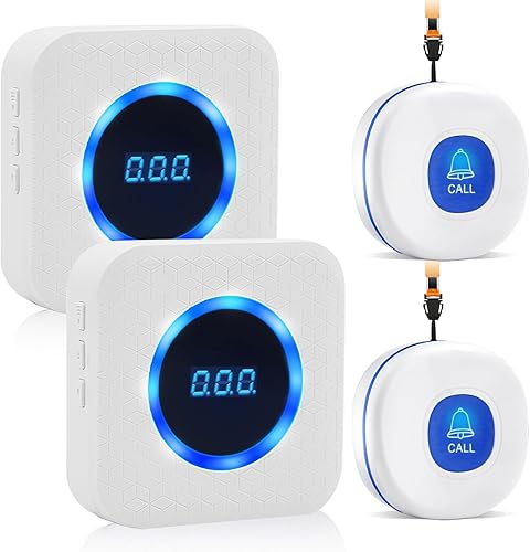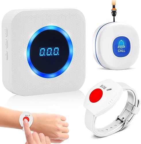 Daytech Pulsante Salvavita Anziani,Pulsante Emergenza Anziani con Display Digitale,Allarme per Anziani per i Familiari che Necessitano di Assistenza Domiciliare (1 Ricevitore + 1 Pulsante)