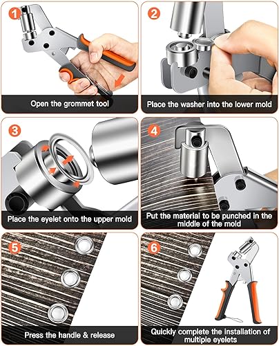Vastar Set di Pinze per Occhielli Professionali Metallici, Pinze per Occhielli per Teloni con 520 Pezzi di Occhielli da 10 mm, Occhiellatrice per Teloni, Tessuti, Pelle, Tende, Manifesti, Striscioni